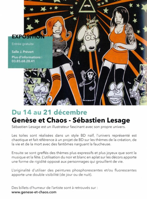 Ce n’est plus de la bande dessinée mais plutôt déglinguée. « Je peux être un peu sadique et représenter des personnages fous » prévient Sébastien Lesage. « Vous nous ouvrez les portes de votre univers » ose adroitement Hervé Mazurek. Le maire très curieux de découvrir les toiles de nuit car elles sont fluorescentes et phosphorescentes. La peinture c’est beau la nuit aussi.